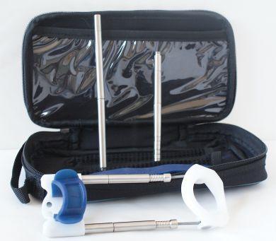 Our penis extender in white is comprised of chrome and stainless steel high quality metal parts, complete with 2 unique soft silicone comfort strap...